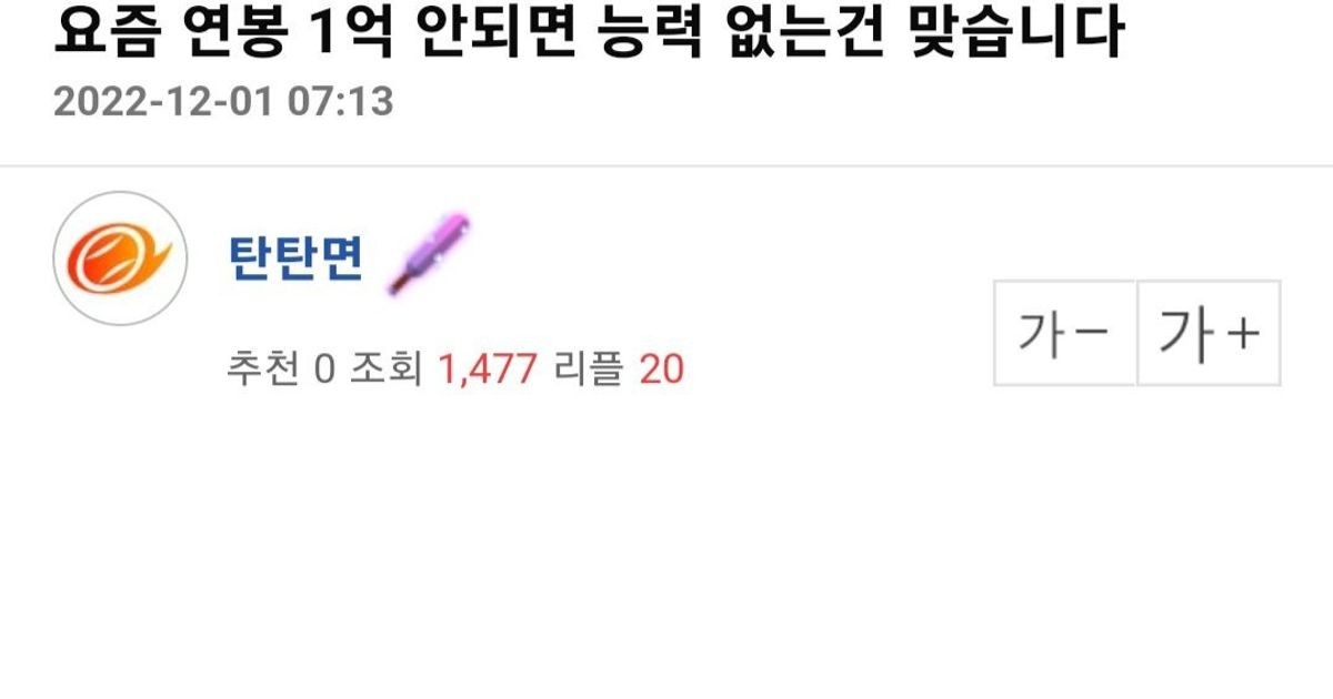 요즘 연봉 1억 안되면 능력 없는건 맞습니다